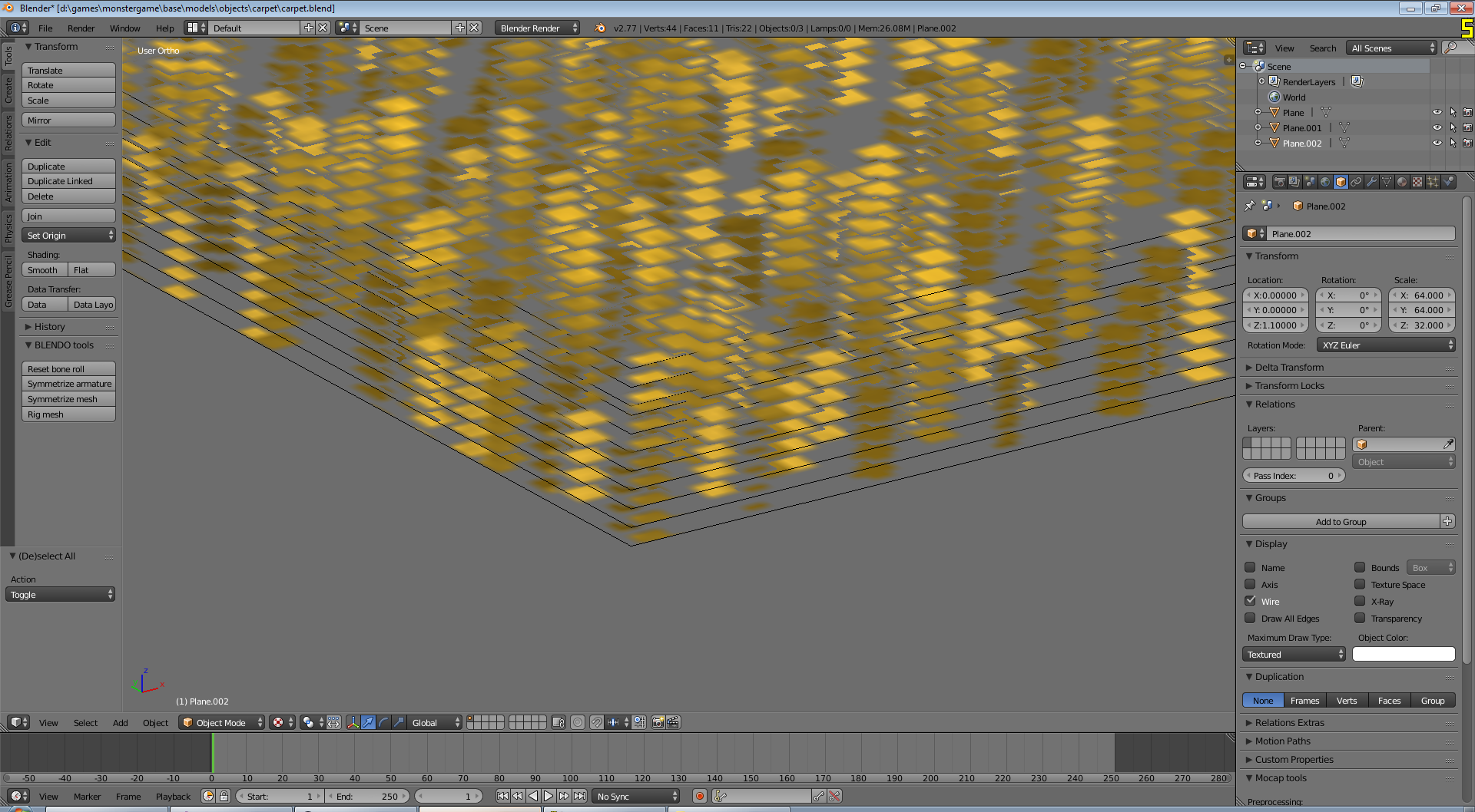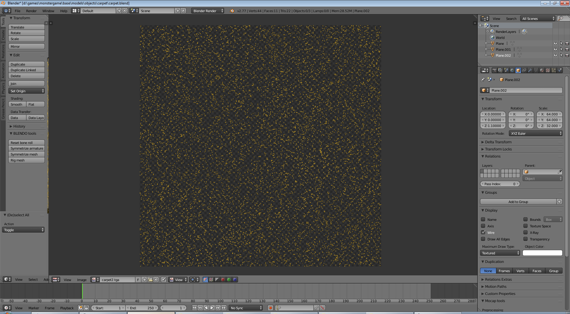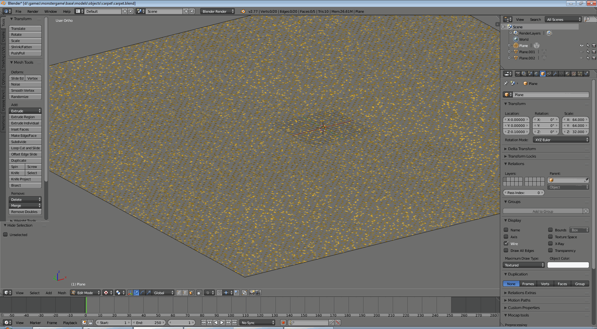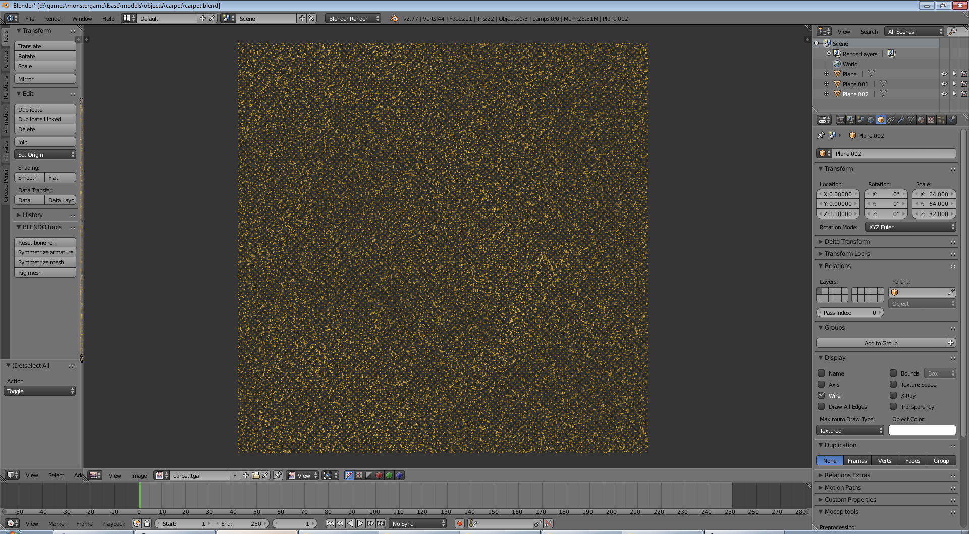 I don’t know how Event[0] made their carpets, but I had an idea of a possible way to do it. I remembered reading this tech writeup of the fur tech in Shadow of Colossus, and was always curious about attempting it myself. This carpet was my perfect excuse to do so.