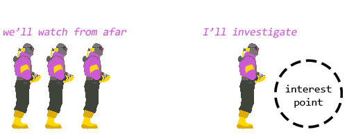 So, we prevent that from happening. In the case of 2+ enemies noticing the same Interest Point, we: