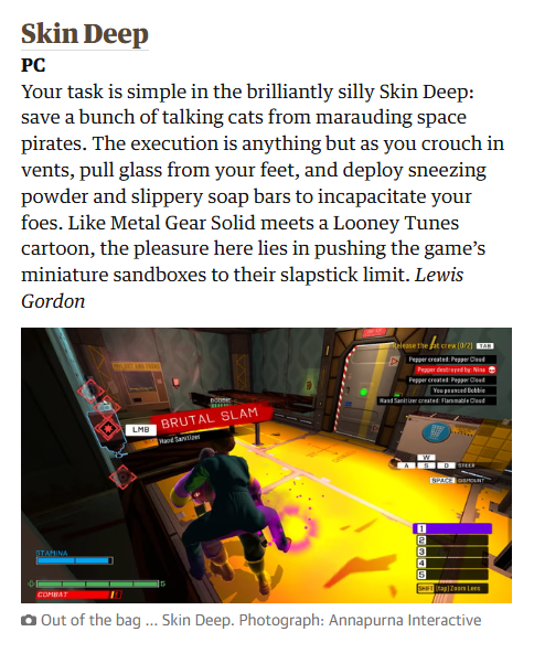 Skin Deep was featured in The Guardian’s video games you may have missed in 2025!