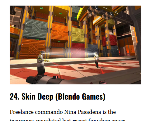 And last but not least, Skin Deep was featured in a very lovely writeup in Eurogamer’s ‘Games of 2025’ roundup.